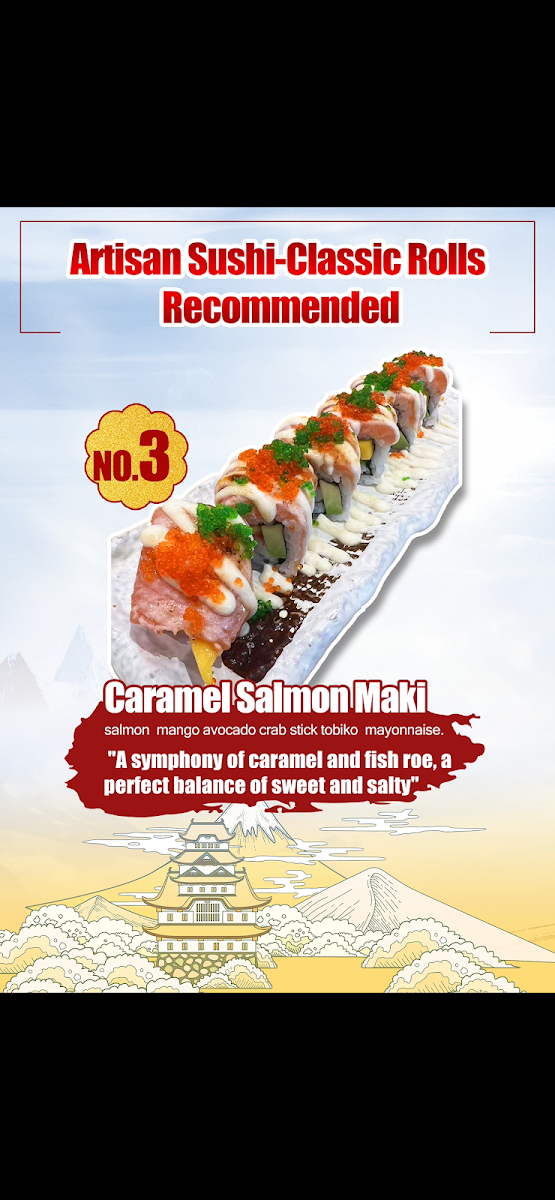 Sushi Selection: Each roll is a piece of art, showcasing the freshness of high-quality fish paired with vibrant, seasonal ingredients.